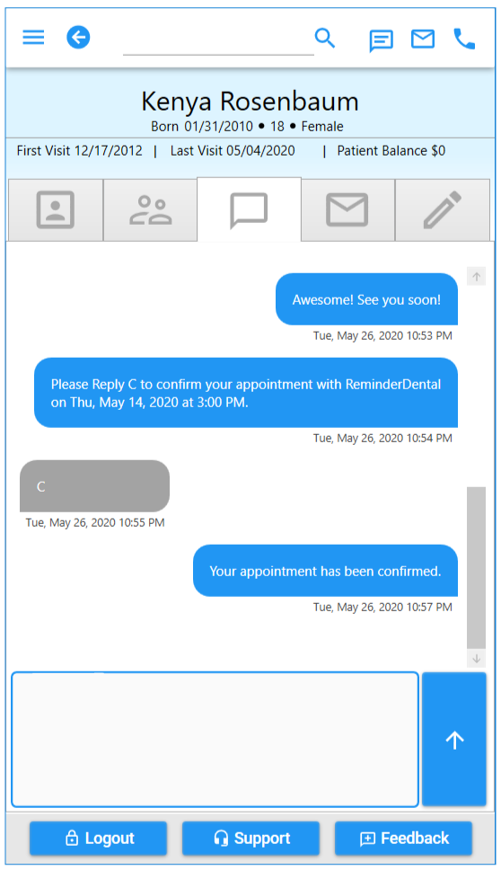 • Two-way texting from The ReminderDental Popup allows you to stay HIPPA compliant by keeping all those conversations tidy and connected to company infrastructure